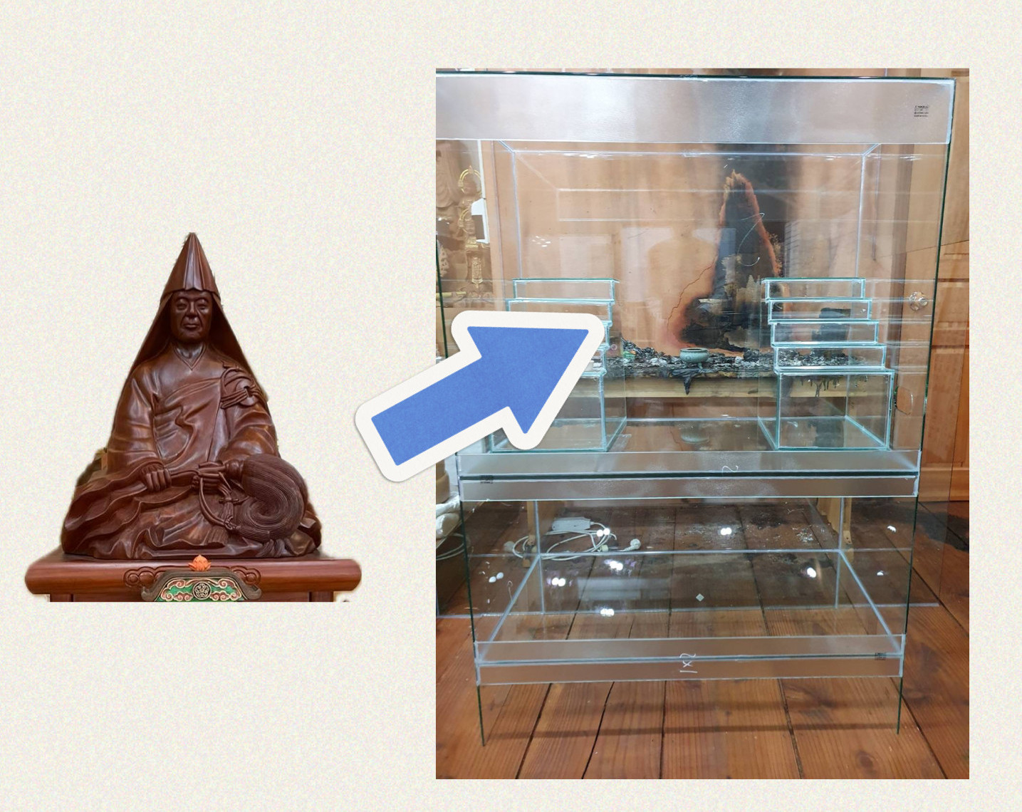 激しく燃え上がる炎の中、そのお曼荼羅が焼けてしまいました。