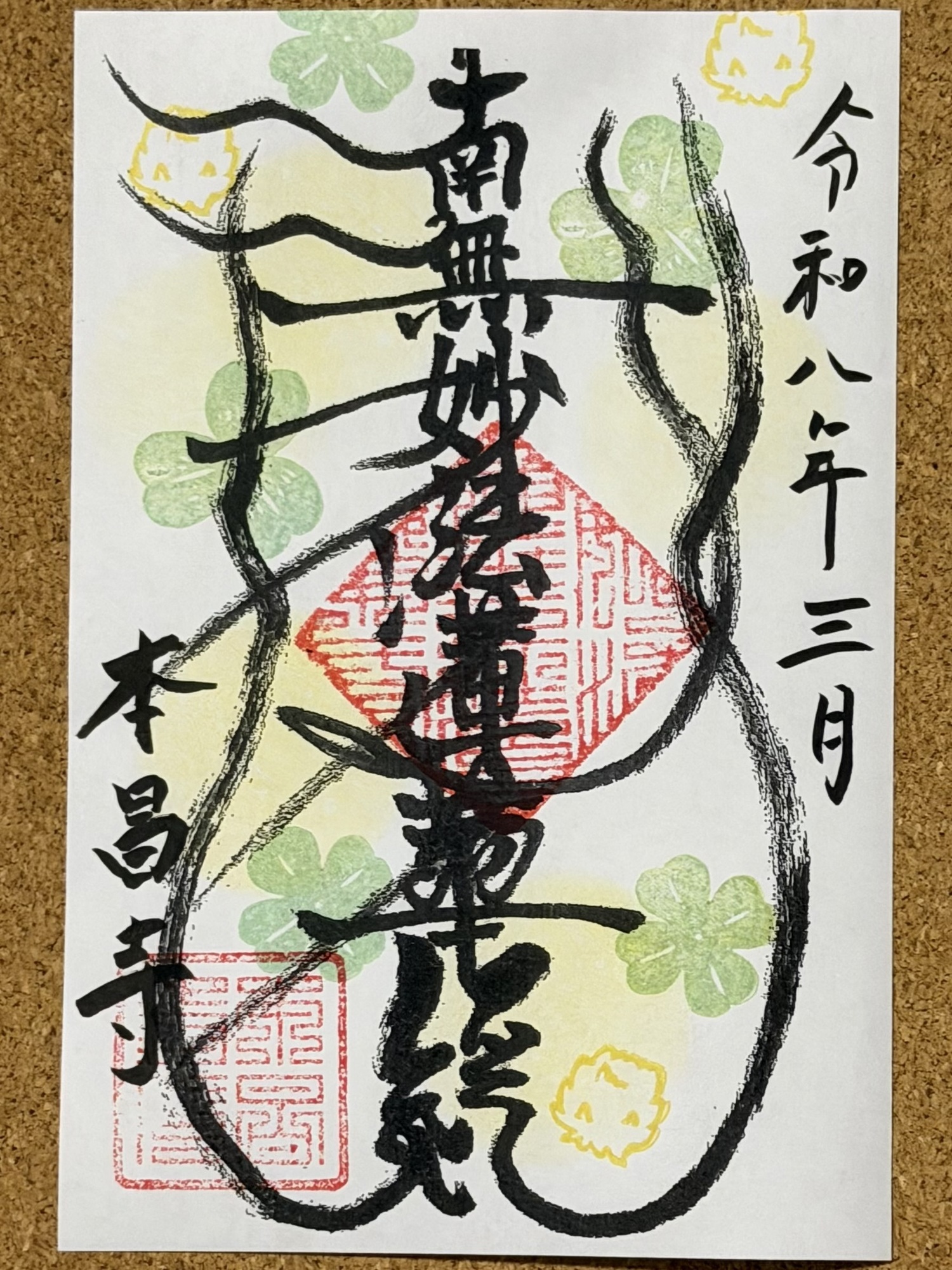 ・コロナで京都旅行が中止になり、御首題を郵送していただけるとのことで、ありがとうございます。収束後にはぜひ本昌寺様へ参拝したいと思います。(埼玉県K様)